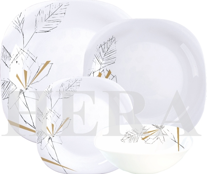 Serviciu de masa din arcopal 19pcs patrat cu model,ambalat in cutie de cadou,se vinde multiplu de bax:2/bax