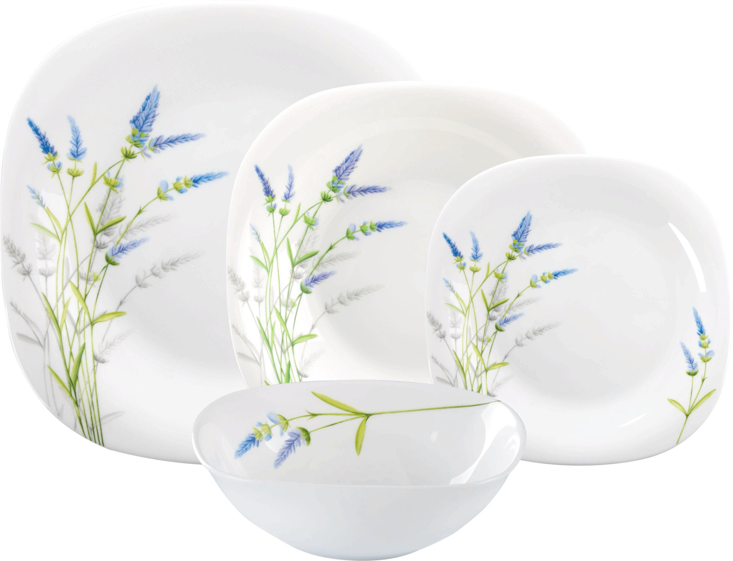 Serviciu de masa din arcopal 19pcs patrat cu model floral lavanda,ambalat in cutie de cadou,se vinde multiplu de bax:2/bax