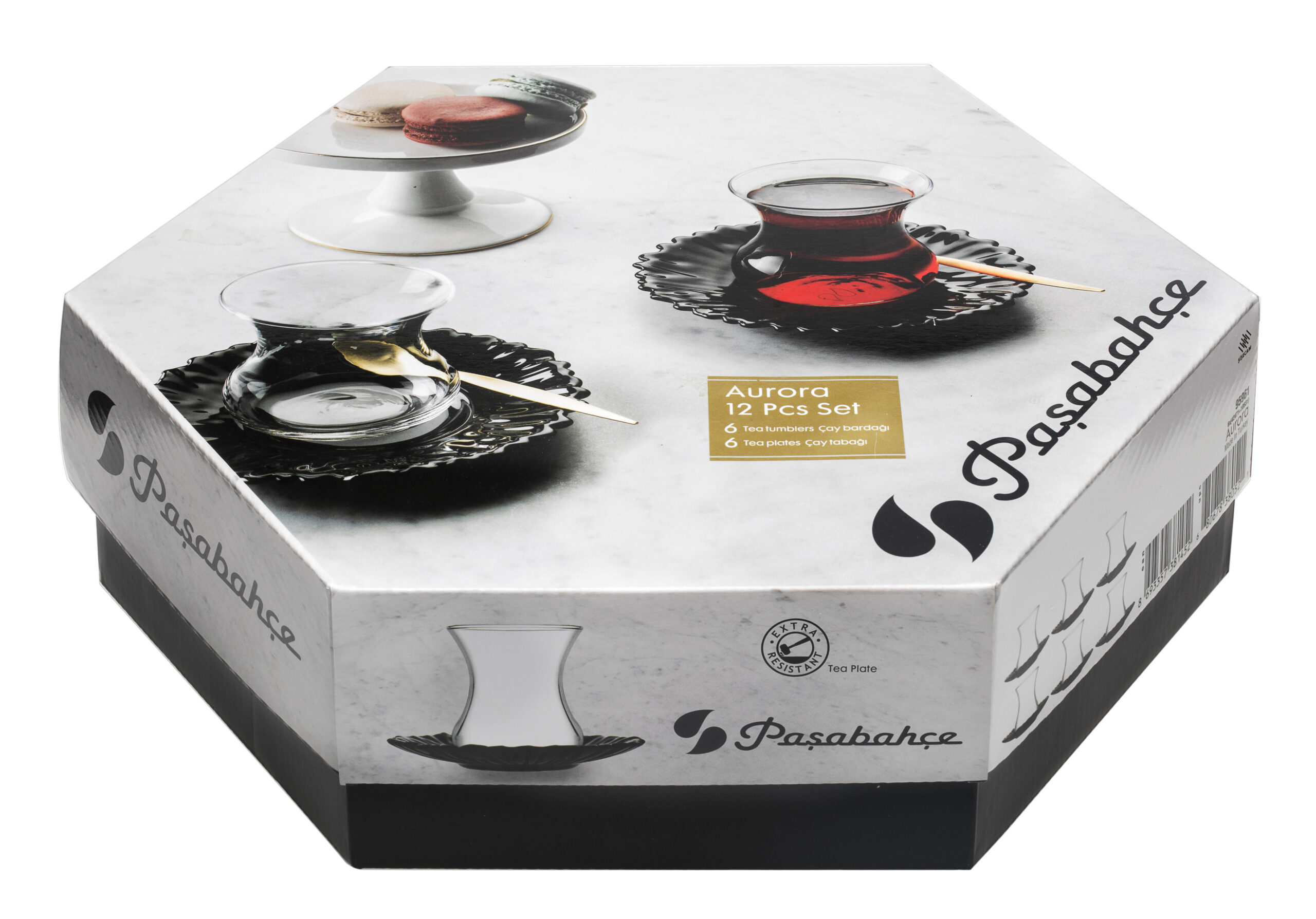 Set ceai format din 6 pahare de ceai si 6 farfurii , ambalat in cutie de cadou,disponibil in mai multe moduri de asezare,se vinde multiplu de bax, 6/bax.