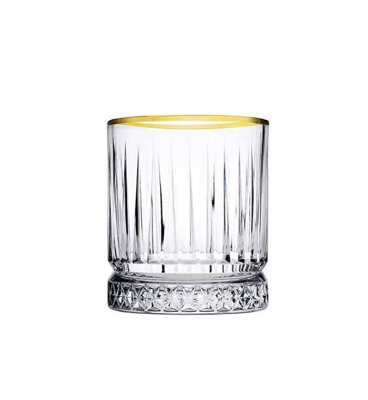 Pahare de whisky din sticla cu margine aurie,ambalate in cutie de cadou,disponibile in mai multe moduri de asezare,se vand multiplu de bax:24/bax.