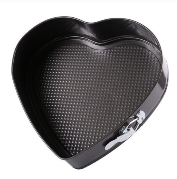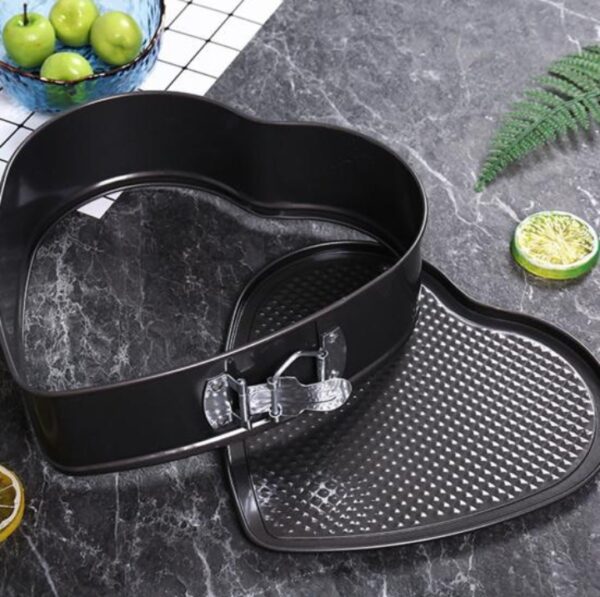 Forma prajitura inima cu mecanism de inchidere,fabricata din otel carbon,culoare interioara ;negru(nu se lipeste),culoare exterioara;negru,ambalat in cutie ,se vinde multiplu de bax:12buc/bax