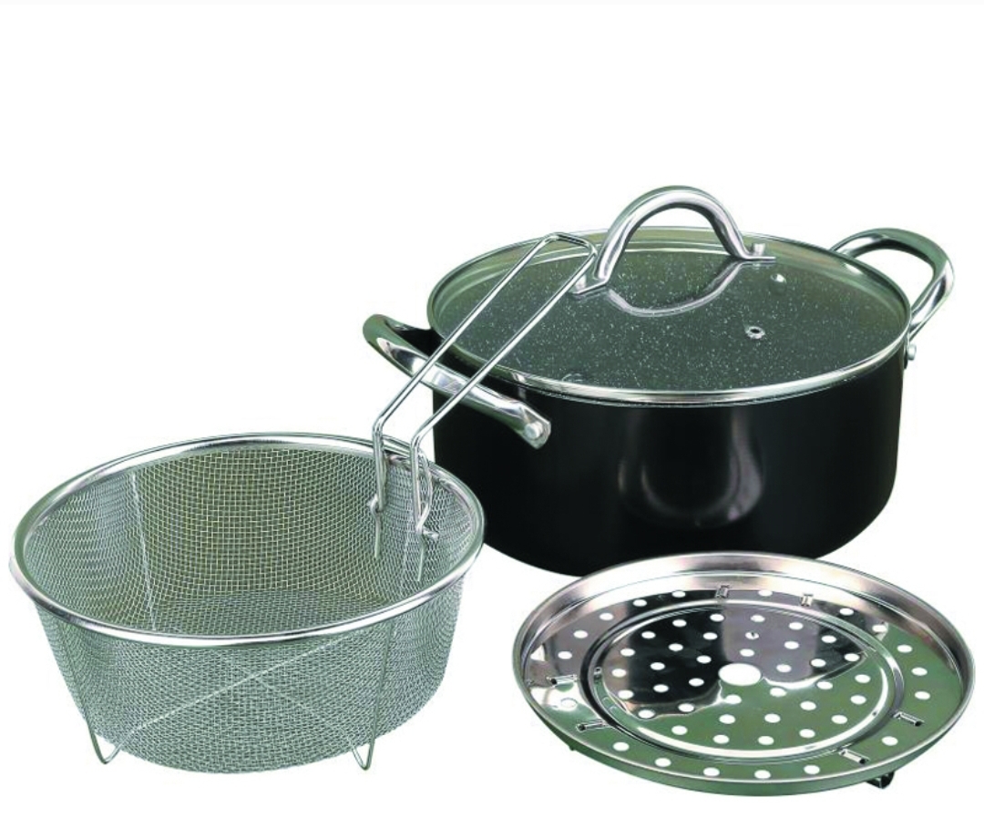 SWAN friteuza multifunctionala cu manere din inox si capac din sticla, o puteti folosi ca tigaie, cratita, tava, vas pentru fiert paste,cu suprafata antiaderenta,accesorii:cos din otel inoxidabil si suport pt cos ,ambalat in cutie de cadou,se vinde multiplu de bax:4/bax