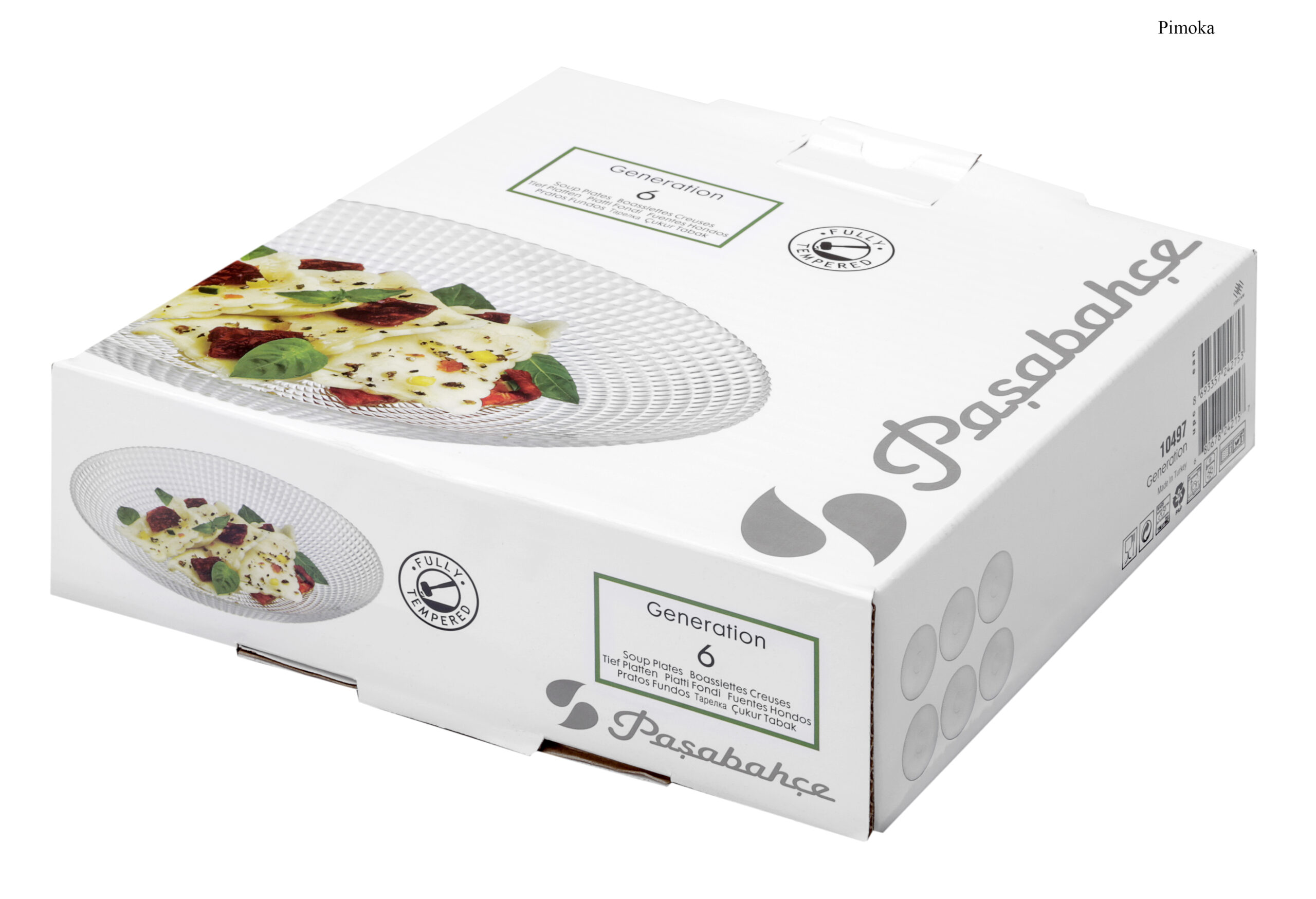 Farfuri adanci din sticla ambalate in cutie de cadou, disponibile in mai multe moduri de asezare,se vand multiplu de bax:24/bax