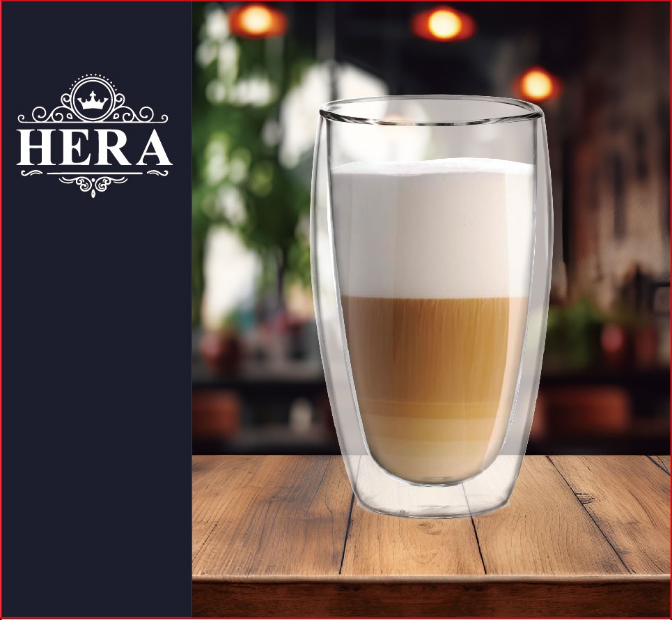 Pahar din sticla barosilicata cu perete dublu,ambalat in cutie de cadou,se vinde multiplu de bax.24/bax