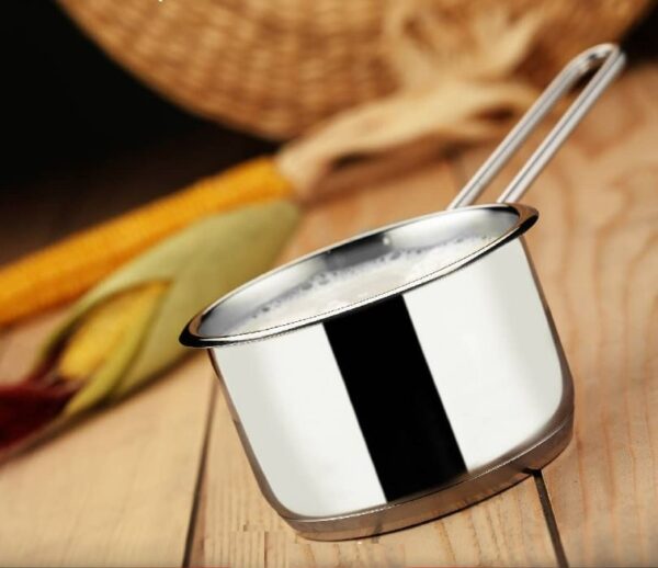 Ibric din otel inoxidabil pentru lapte cu maner elegant ,fund cu inductie pentru utilizare in toate tipurile de aragazuri,se vinde multiplu de bax:12/bax