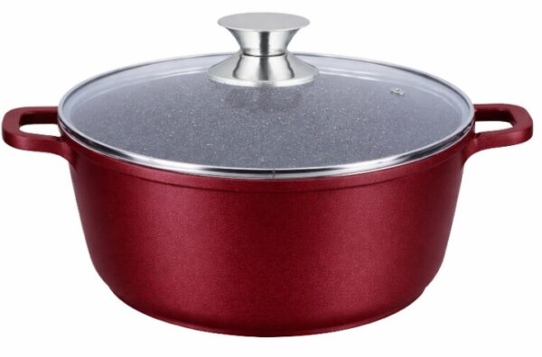 Cratita cu invelis antiaderent din marmura,cu capac din sticla termorezistenta,poate fi folosita pe toate sursele de gatit, disponibila in mai multe dimensiuni si culori, se vinde multiplu de bax: , 4/bax.